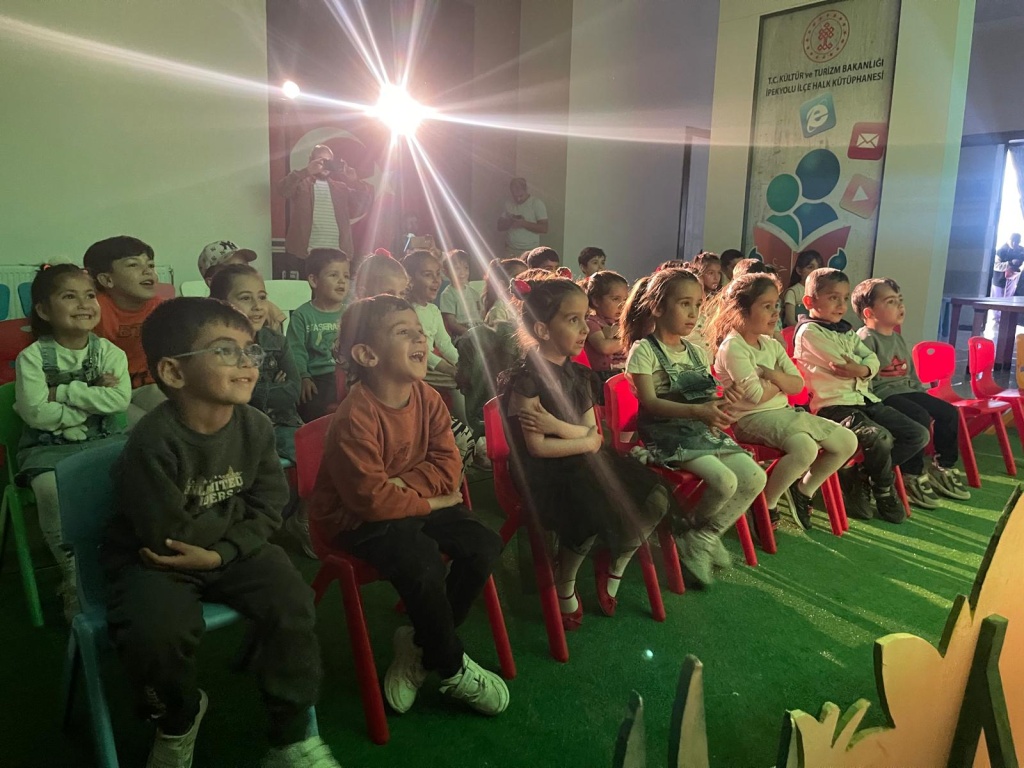 Miniklerimiz İpekyolu İlçe Halk Kütüphanesi'nde ve Kültür Müdürlüğü tiyatro salonunda sergilenen tiyatro gösteriminde mutlu anlar yaşadılar.